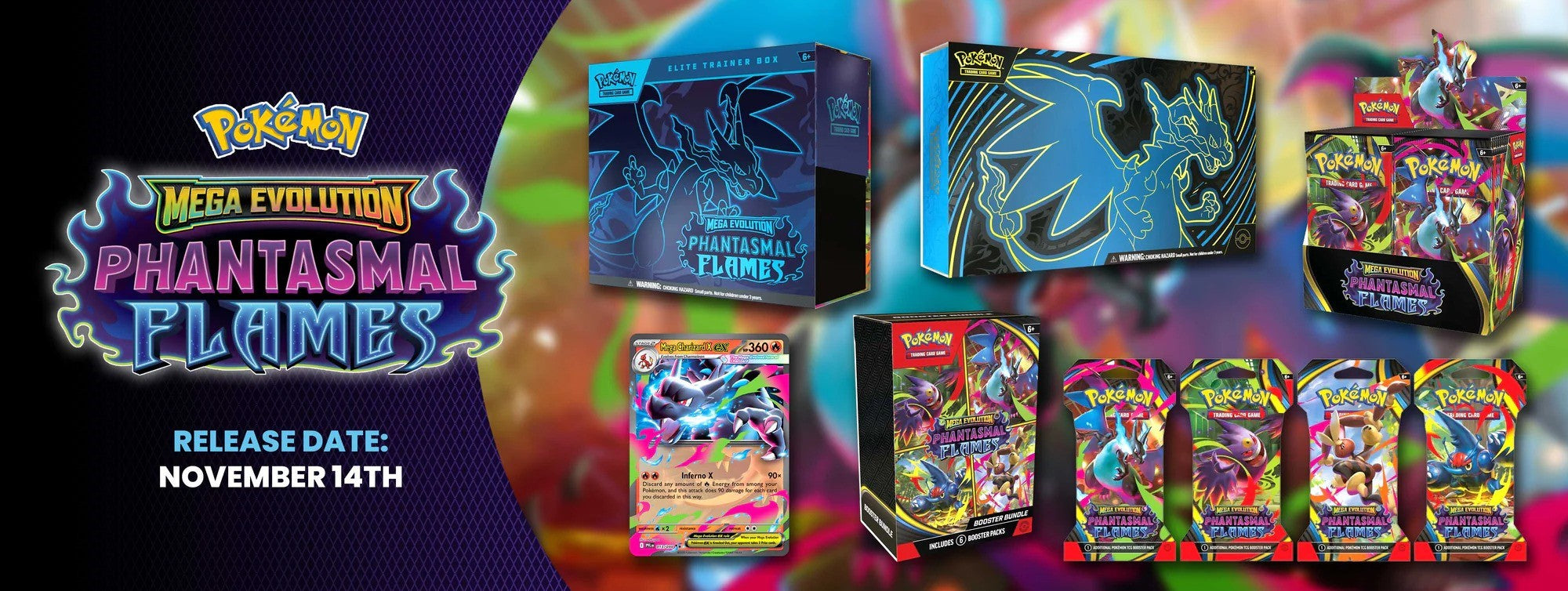 Bereid je voor op een vurige nieuwe uitbreiding in de Pokémon TCG-wereld! Phantasmal Flames brengt de iconische Mega Evolutions terug, met spectaculaire kaarten, adembenemende artwork en krachtige nieuwe strategieën. Vanaf 14 november vind je bij TrainerDex alles wat je nodig hebt — van boosters en elite trainer boxes tot complete displays.